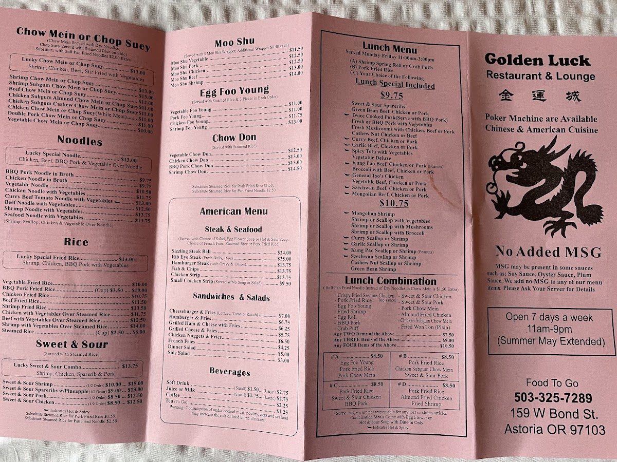 Golden Luck Restaurant & Lounge Menu