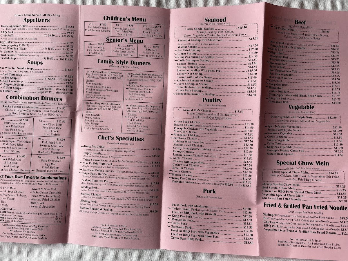 The menu at Golden Luck Restaurant & Lounge offers a straightforward, comforting selection of classic Chinese dishes that fit well with its relaxed, neighborhood vibe. Diners can expect a mix of hearty entrees, shareable appetizers, and warm beverages that pair nicely with the inviting atmosphere.